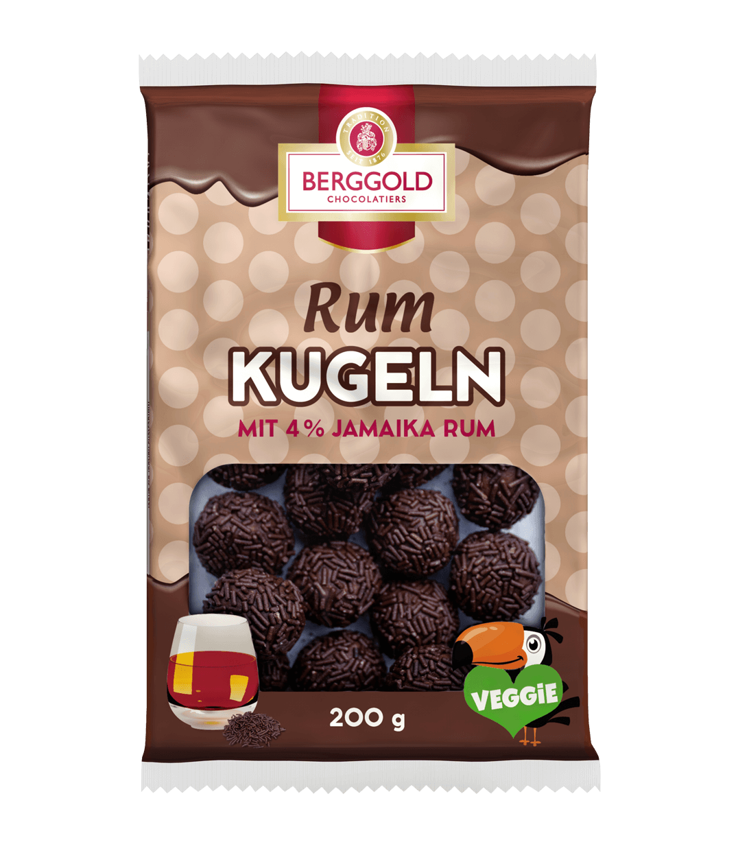 BERGGOLD Rumkugeln – genieße die zartschmelzenden Rumkugeln im knackigen Schokostreuselmantel mit echtem Jamaika-Rum. Der beliebte Konditorei-Klassiker wurde in mundgerechter Größe neu kreiert. Hol' dir den leckeren Geschmack nach Hause und erlebe einzigartige Genuss-Momente!